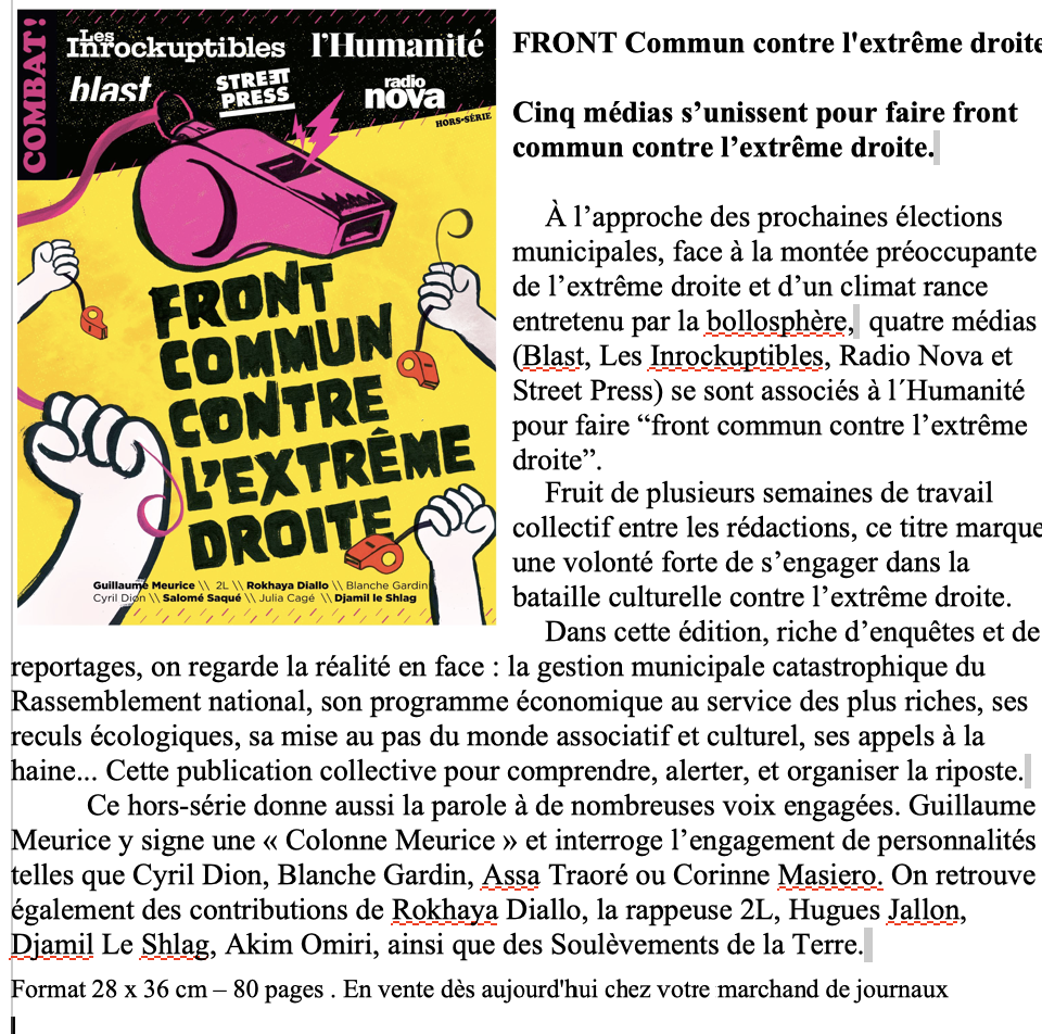 Cinq médias s’unissent pour faire front commun contre l’extrême droite. 24 février 202624 février 2026 NP